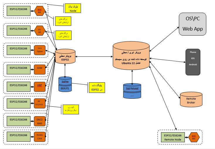 در طراحی مدار تجهیزات از ماژول های ESP32 و ESP8266 استفاده می شود که به عنوان هسته اصلی پردازش ایفای نقش می کند و با توجه به توانایی های این دو ماژول امکان ارتباط در بستر دیگر پروتکل های اتباطی مثل بلوتوث ، لورا ، زیگبی و دیگر شبکه های باسیم را به راحتی فراهم می کند.